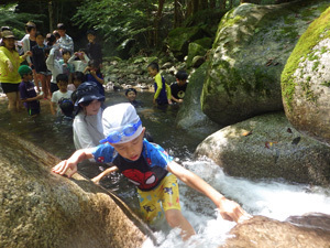 沢登りにもチャレンジしました。岩をしっかりつかんで、精一杯よじ登ります。