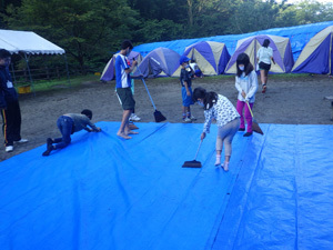 朝飯前のひと仕事、朝づくり。前夜の雨で汚れてしまったシートをピカピカに掃除しました!