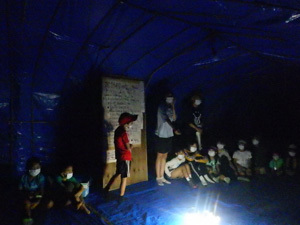 最後の夜は雨が降ったので、テントの中でランタンファイヤーを開催!実行委員を中心に最後の楽しい思い出ができたね!