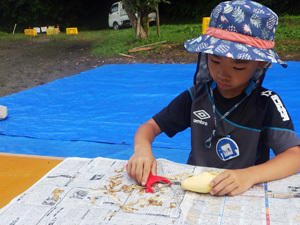 木工では、竹で弓矢作りに挑戦!上手く飛ばせるかな?