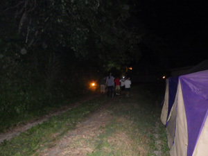 夜は肝試しです。夜は真っ暗なので、歩くだけでもドキドキします。肝試し実行委員さんが楽しい肝試しを考えてくれました。