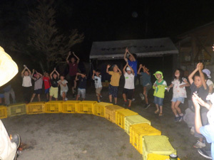 最後の夜はキャンプファイヤー!火を囲んで歌って踊って、最後は「団結おどり」でB1組の団結が高まりました!
