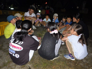 族ごとに輪になって、一緒に過ごした仲間たちとふりかえりです。キャンプで感じたことや仲間たちへの感謝の気持ちを伝え合いました。