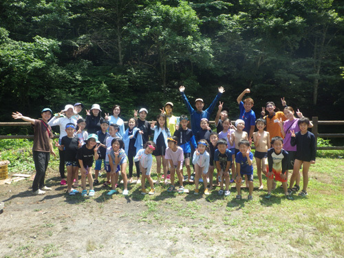 まずはみんなで川遊び!初日の集合はまさかの大雨でしたが、それ以外は晴天に恵まれました。