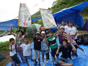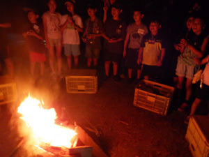 最後の夜はキャンプファイヤーをしました。歌って、遊んで大盛り上がり。