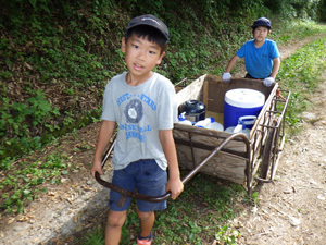 チャレンジコースでは水を自分たちで運びます。仲間のために力を合わせて頑張りました。