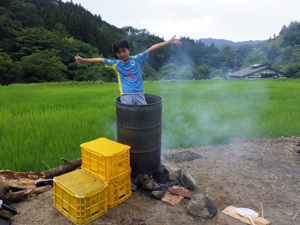 ドラム缶風呂では水を汲み、火おこしから行いました。大変だった分だけ気持ちいいね。