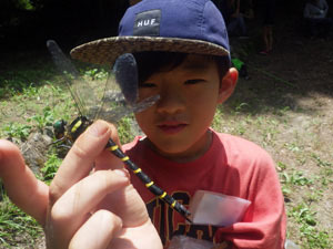 虫とりでは大きなオニヤンマを捕まえました。都心では見つけられない虫に大興奮。