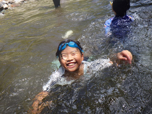 ご飯づくりを頑張った後は川遊びです!水が冷たくて気持ちいい~!