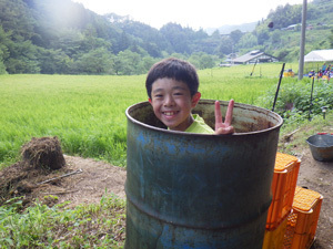 「ドラム缶風呂がやりたい!」とのことで、始めようとしましたが暑かったのでドラム缶水風呂をしました!(笑)