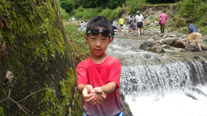 川の上流に向かって歩く“さわのぼり”をしました。自然いっぱいの景色を楽しみながら目的地に到着です。