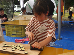 野菜を切るチームも火が通りやすいように薄くスライスを頑張ります。