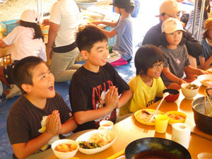 ご飯が完成しました。ごはんの歌をみんなで歌って喜びをかみしめます。