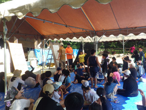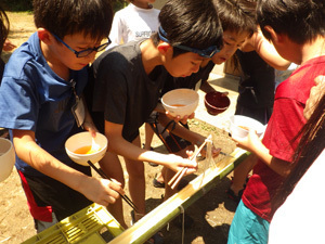 竹を山から切り出して台をつくって、流しそうめんをしました。「冷たくておいしい!」