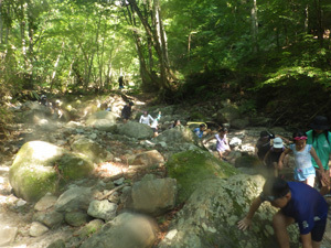 沢のぼりに出かけました。森の中はひんやりした空気が流れています。ゴールを目指して歩きます。