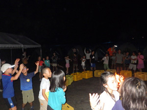 最後の夜はキャンプファイヤーです。「団結おどり」をみんなで踊って盛り上がりました。