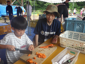ごはんづくりにも慣れてきてスピードアップ。仲間と連携してスムーズにできるようになりました 。