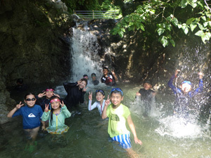 暑かったので全員で川遊び 。冷たい川で気分もリフレッシュ !