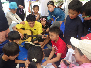 すきま時間にはギターを囲んで大合唱!