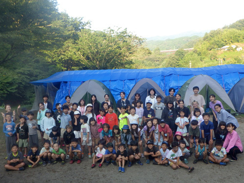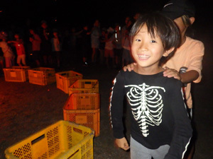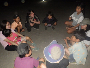中日の夜に肝試しをしました。実行委員が内容を考えてくれて、みんなで楽しみました。