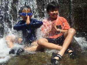 ベーシック6組が始まりました。まだまだ暑い泰阜村。冷たい川が気持ちいい。