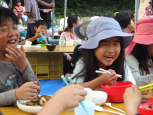 自分たちでつくったご飯の味は格別です。笑顔がこぼれます。