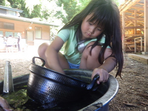 お片付けも子供が主役です。真っ黒のお鍋もピカピカになるまで洗います。