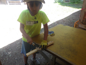 工作チームは ネームプレートや山賊キャンプの看板を作りました。