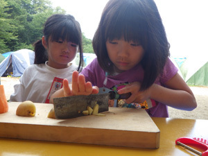 ベーシック8組がはじまりました。ごはんは自分たちでつくる!初めての包丁に緊張するけど、ちゃんと見ているから大丈夫!自分で考えてチャレンジしてみよう!