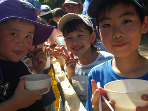 みんなで割って作った流しそうめん。夏の風物詩です。みんなで作ったそうめんの味は格別です。