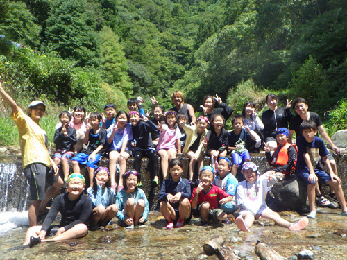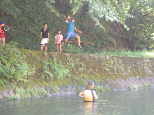 川に向かって大ジャンプ!「気持ちいい!」と何度も飛び込みに挑戦する子がたくさんいました。