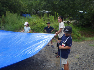 2日目の朝からフィールドに移動して全員が 寝ることのできる大きな寝床を作りました。