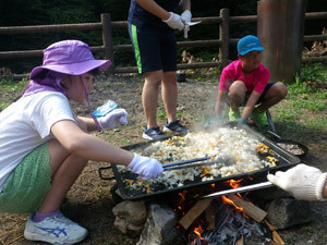 ご飯は族ごとにメニューを決めて、自分たちで作ります。初めての朝ごはん作りでは、なんとチャーハンに挑戦する族もありました!