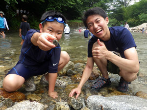ベーシック5組が始まりました。川遊びできれいな石を見つけました。