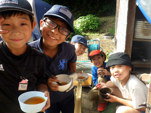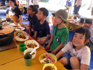 ごはんが完成しました。おいしそうなご飯を前にみんなとっても嬉しそうです。