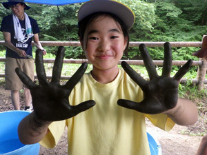 ごはんづくりの片付けでは手が真っ黒になるまで鍋をきれいにしました。頑張った勲章です。