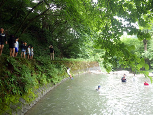 左京川のプールで飛び込みを楽しみにしていたこどもたち。何回も飛び込みました。