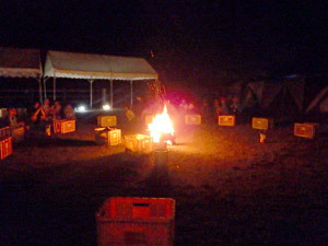 キャンプファイヤーで歌って踊って楽しみました。期間中に誕生日の子が2人いたので、サプライズでお祝いもしました。