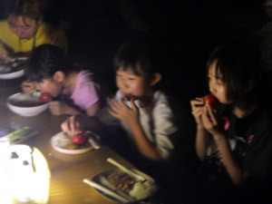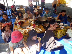 ベーシック8組が始まりました。初日の夜ご飯は山賊カレーです。採れたての泰阜トマトもおいしくいただきました。