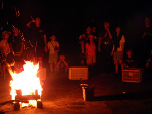 ベーシック8組の最後の夜はキャンプファイヤーで締めくくりました。はないちもんめやもうじゅう狩りなどで盛り上がりました。