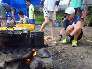 ごはんの火起こし。ただ大きければいいというわけではない。絶妙な火加減が大切なのです。