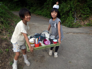 チャレンジコースは水場が遠くてちょっと不便。でもだから面白い。仲間とリヤカー(チャレンジ号)を引っ張って協力して水を運ぶ。それがなんだか楽しいのです。