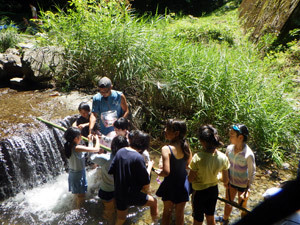 川の段差を利用して“流し飴”。流れる水に気持ちまで涼しくなりました。