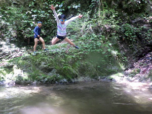 沢登りの先にある秘密の飛込ポイント。自然の地形の面白さを感じつつ。思いっきりダイブ!