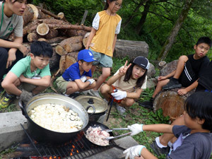 最長11泊12日のスーパー2組がスタートしました。長いキャンプでもっとも大切なのは話し合いです。メニューを決めるのも、困ったことがあった時もみんなで気持ちを寄せ合います。