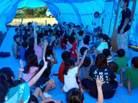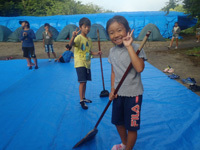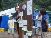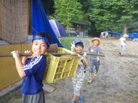 身の回りの掃除は何もキャンプに限ったものではなく、むしろ日常生活において重要な活動です。こどもたちはごみ捨て、テントそうじ、トイレそうじなどを自分たちで決めて行います。