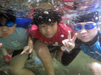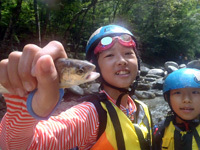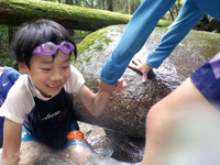 びっくりするぐらい水がきれいな川で遊ぶよ。チャレンジする気持ちがある子は、上流の大きな滝をめざして沢のぼりだ!