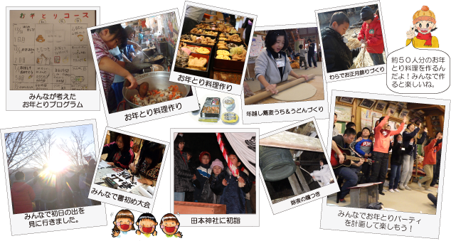 おおみそかには、伊那谷の伝統行事「お年とり」を味わい、みんなで手作りのお正月をむかえる準備をしよう。
