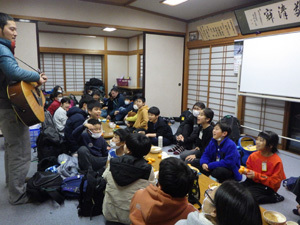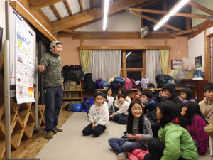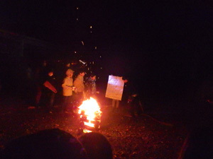 最後の夜はキャンプファイヤーでした。歌って踊って寒さも吹き飛びました。