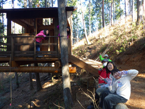 今年リニューアルされたツリーハウスで、かくれんぼやおままごとをして遊びました。